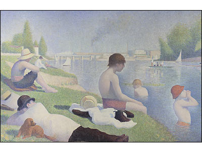 بعدها نقاشانی چون سزان، گوگن و ون گوگ از اين مکتب فاصله گرفتند و با پايه گذاری سبکی که بعدها به پست - امپرسيونيسم شهرت پيدا کرد، مقابل امپرسيونيستها قرار گرفتند. حمام آفتاب در انير؛ ژرژ سورا - 1884