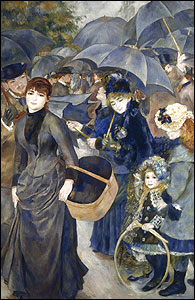 در اين نمايشگاه آثاری از مهمترين نقاشان اواخر قرن نوزدهم و اوايل قرن بيستم ميلادی اروپا به نمايش گذاشته شده است. چترها؛ پير آگوست رنوار- حدود 6-1881