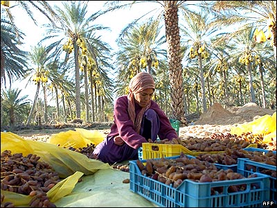 زنی در حال جمع آوری خرما در جنوب تونس