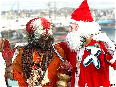 مرتاض هندی با بابانوئل در هند. |