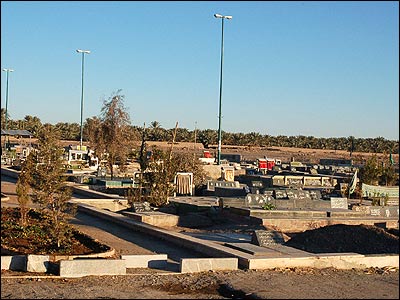 قبرستان بم، بعد از زلزله، پر شد از اهالی نجات نیافته بم. این بخش از شهر شاید بهتر از هر جای دیگر سامان گرفته باشد. اما باز هم به هم ریخته و نامناسب است.