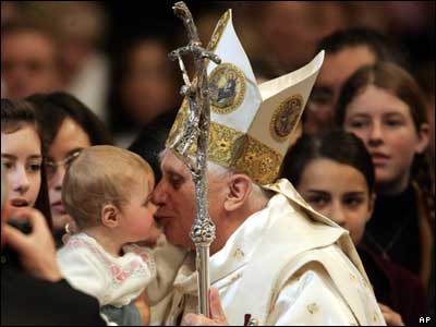 پاپ بنديکت شانزدهم پس از پایان مراسم دعای سال نو که در کلیسای جامع "سنت پیتر" در واتیکان برگزار شد. در این مراسم پاپ مردم جهان را به صلح و آشتی و دوری از جنگ و خشونت دعوت کرد