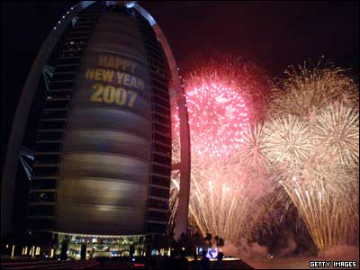آتش بازی در کنار برج العرب در دبی به مناسبت آغاز سال نو میلادی