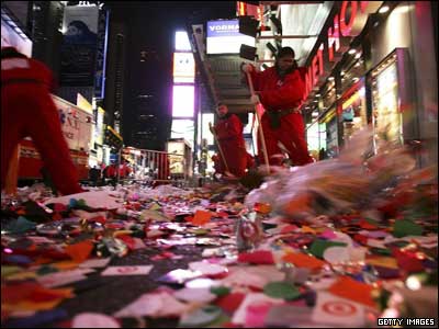 پاکسازی میدان"تایم" در نیویورک پس از جشن خیابانی آغاز سال نو میلادی در این شهر