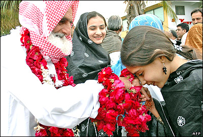 دختر پاکستانی و يکی از اعضای مسن خانواده اش که از حج برگشته است.