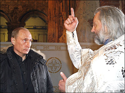 ديدار ولاديمير پوتين رئيس جمهور روسيه با يکی از روحانيون کليسای ارتدوکس روسيه بعد از مراسم روز کريسمس مسيحيان ارتدوکس.