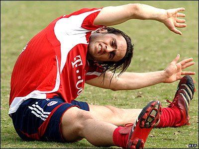 علی کريمی فوتباليست ايرانی باشگاه بايرن مونيخ در حال تمرين در دوبی. |