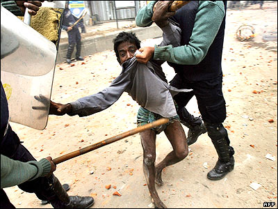 درگيری پليس بنگلادش با يک معترض در جريان اعتصاب سراسری سه روزه در اين کشور.