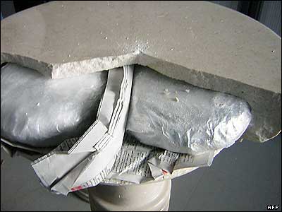 تصوير ستونی از سنگ مرمر که داخل آن ترياک جاسازی شده است. اين ستون که از ايران به مقصد فرانسه فرستاده شده بود در گمرک فرودگاه شارل دو گل پاريس کشف شد. مقدار ترياک جاسازی شده به اين صورت 932 کيلوگرم و ارزش آن 139 هزار و 800 يوروست.