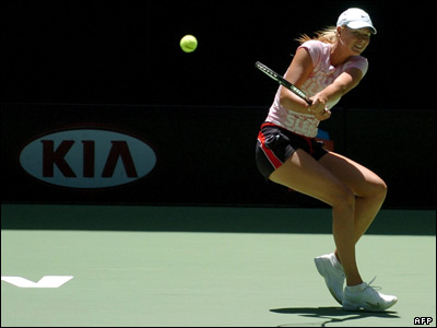 ماريا شاراپووا از روسيه در مسابقه تنيس ملبورن، استراليا.