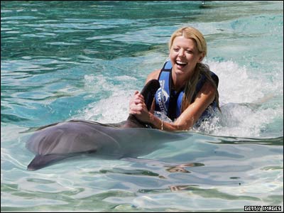 تارا رد، بازيگر سينما در حال شنا با دلفين ها در استراليا پيش از حضورش در يک مسابقه اسب دوانی.