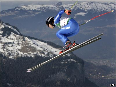 مايکل بونتی از سوئيس در مسابقات جهانی اسکی مردان در اين کشور.