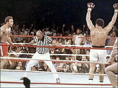 در سن 32 سالگی در مسابقه ای که به "غرش در جنگل" مشهور شد، پس از هشت راند با ضربه کردن جورج فورمن، دنيا را حيرت زده کرد.