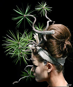 مدهای بهار و تابستان سال 2007: يک مانکن در حال نمايش طرحی از جان گاليانو، طراح بريتانيايی، که برای کريستين ديور تهيه شده است.