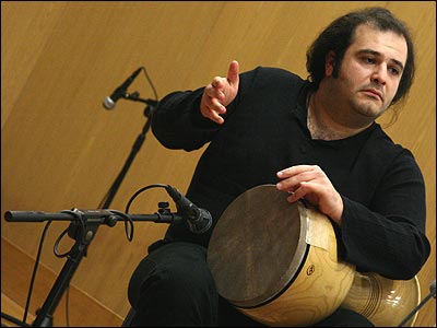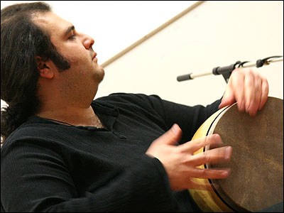 تصويری از حميد قنبری در حال نواختن دف |