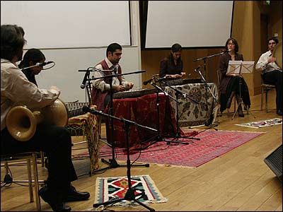 اين برنامه در دو قسمت اجرا و ابتدا با معرفی نوازندگان مبتدی مقيم لندن به رهبری فرشاد محمدی آهنگساز و نوازنده سنتور شروع شد.