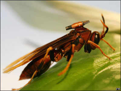 حشره ای که در انجمن جانورشناسی لندن برای ردیابی حرکتش یک وسیله شناساگر کوچک بر روی آن قرار داده شده است. |