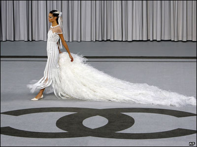 لباس عروس طراحی شده توسط "کارل لگرفلد" در شوی لباسهای تکدوز بهاره-تابستانه "شنل" در هفته مد پاریس.