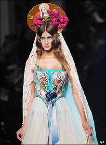 مانکنی با لباس طراحی شده توسط 'ژان پل گوتيه' طراح لباس فرانسوی در يک نمايشگاه مد لباس در پاريس.