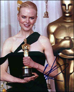 مجموعه از عکسهای امضاء شده بازيگرانی که عمدتا برنده جايزه اسکار شده اند ماه آينده در انگلستان به حراج گذاشته می شود. نيکول کيدمن در سال 2003 برای بازی در نقش ويرجينيا وولف در فيلم "ساعتها" برنده اسکار شد.