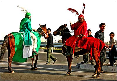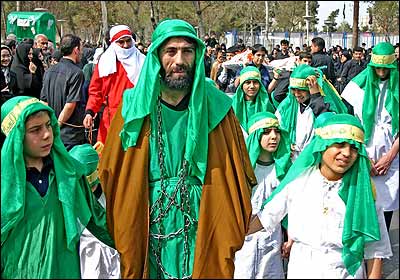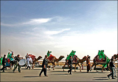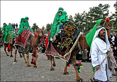 تعزیه اوج این آئین های نمایشی است که خود به یک نوع نمایش خاص تبدیل شده است. این تعزیه در مورد موضوعات مختلف که به شرح ماجرای زندگی امامان و اولیا مذهبی شعیه برمی گردد، اجرا می شود. حرکت کاروان اسرا در اتوبان آزادگان.