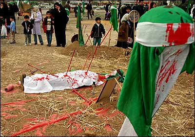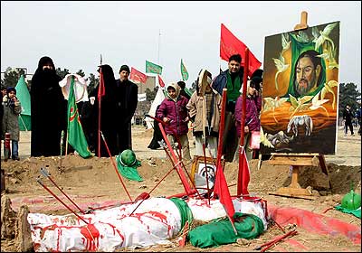 هر سال درایران در ایام ماه محرم که شروع سال نو قمری است، با عزاداری برای امام سوم شيعيان و یارانش همراه است. تل زینبیه در دولت آباد، جنوب تهران.
