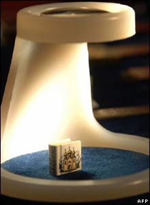 يکی از کوچکترين کتاب های جهان به قطع 9سانتیمتر در8 سانتیمتر در نمايشگاه جهانی کتاب در تايپه پايتخت تايوان. |