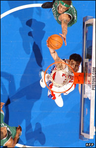 در مسابقات ليگ بسکتبال حرفه ای آمريکا، ان بی ای، پيستون دانکس، بوستون کلتيکس را 109 بر 102شکست داد. اين مسابقه در اوبورن هيلز ميشيگان برگزار شد. |