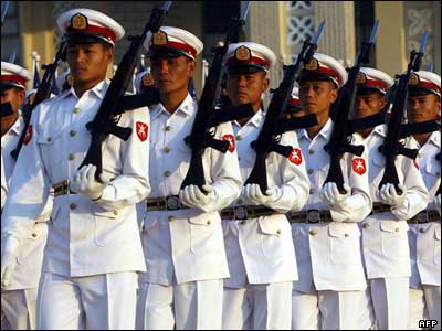 نظامیان میانمار در جریان مراسم شصتمین سالگرد روز وحدت در این کشور.
