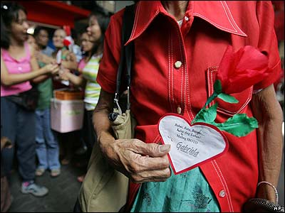 یک زن فیلیپینی با گل رز کاغذی در آستانه روز والنتاین در مانیل.