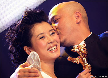 خرس طلايی، که مهمترين جايزه اين جشنواره است به فيلم چينی "عروسی تويا" با بازی يو نان (چپ) و به کارگردانی "وانگ کوان آن" تعلق گرفت.