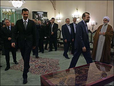 بشار اسد، رئيس جمهور سوريه در سفری دو روزه به ايران، با تعدادی از بلند پايه ترين مقامات اين کشور از جمله علی لاريجانی، دبير شورای عالی امنيت ملی ايران ديدار کرد.