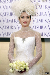 شيزوکا آراکاوا، قهرمان اسکيت در المپيک، در نمايشگاه لباس عروسی طرحی از يومی کاتاسورا، طراح لباس ژاپنی را برتن کرده که قيمت آن يک ميليارد ين (حدود 8.3 ميليون دلار) است. |