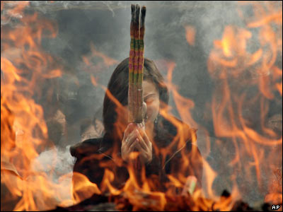 زنی در پرستشگاه باغ یویوآن، در شانگهای چین برای سال نوی قمری نیایش می کند.