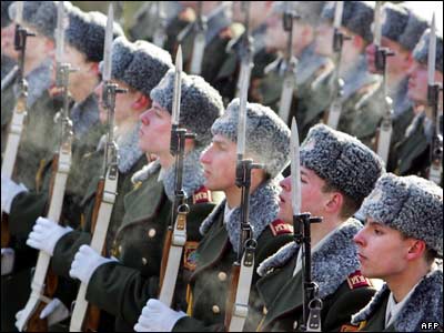 سربازان بلاروس به مناسبت روز ارتش شوروی سابق رژه می روند.