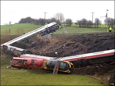 در اثر منحرف شدن قطاری در کمبريا در بريتانيا يک نفر کشته و دوازده نفر ديگر به شدت زخمی شدند
