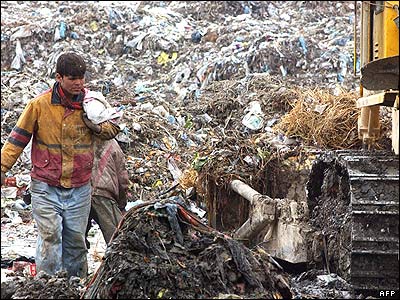 پسر افغان در جستجوی پاره های آهن و پلاستيک در کابل. از زمان سقوط طالبان تا به حال جميعت کابل به حدود چهار ميليون رسیده است و شهرداری کابل با مشکل جدی از ناحيه جمع آوری آشغال ها در شهر مواجه شده است
