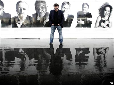 نمایشگاهی از عکس های رنکین، عکاس معروف، در قطع بسیار بزرگ امروز در لندن افتتاح شد. در عکس فوق، رنکین را مقابل عکس هایش می بینید.