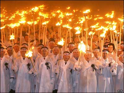 شهروندان کره جنوبی با لباس های سنتی و مشعل به دست، سالگرد استقلال این کشور را جشن گرفتند.