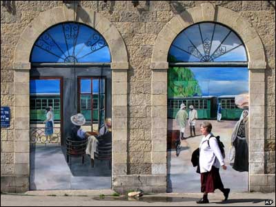 دیوار ساختمان اصلی ایستگاه متروکه قطار در بیت المقدس با نقاشی هایی از ورود مسافران به ایستگاه تزئین شده است. خط بین تل آویو و بیت المقدس در فاصله بین سال های 1892 تا 1998 فعال بود.