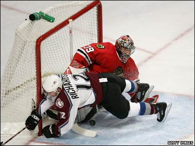 در مسابقات قهرمانی هاکی روی یخ آمریکا NHL دو تیم کلرادو آوالانچ و شیکاگو بلک هاوکز در شیکاگو به مصاف هم رفتند. این بازی شش بر یک به سود کلرادو تمام شد.