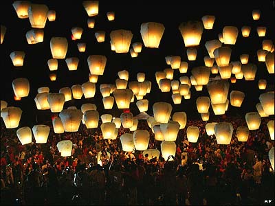 صدها تایوانی در جشنواره چینی فانوسها شرکت کردند. به اعتقاد آنها رها کردن فانوسها کاغذی در آسمان برای آنها سالی پر رونق را در بر خواهد داشت