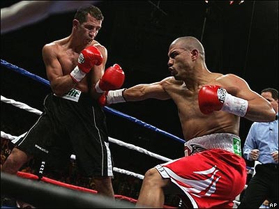 در جريان مسابقات قهرمانی بوکس سبک وزن جهان میگل کوتو از پورتوريکو (راست) بر حريف آلمانی اش اوکتال اورکال پيروز شد و توانست عنوان قهرمانی اين مسابقات را بار ديگر بدست آورد.