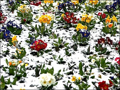 ظاهرا هنوز خبری از رسيدن بهار نيست. با آنکه درختان بسياری در انگلستان شکوفه کرده اند، اما شمال شرقی انگلستان در پی بارش برف در شامگاه دوشنبه سفيد پوش شده است.