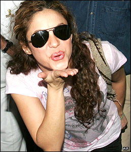 شکیرا خواننده کلمبیایی در فرودگاه مومبای (بمبئی)، هند. شکیرا روز یکشنبه کنسرتی را در این شهر اجرا خواهد کرد. |