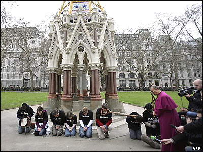 اعضای یک گروه که به مناسبت دویستمین سالگرد برچیده شدن برده داری در بریتانیا، مسافتی به طول 250 مایل را با غل و زنجیر راه رفتند.