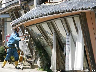 مردی در حال بازرسی خانه ای در واجیما در شمال ژاپن که بر اثر زلزله آسیب دیده است. روز دوشنبه، 26 مارس، زلزله شدیدی مناطق شمالی ژاپن را به لرزه در آورد. |