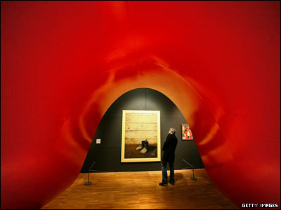 تابلوی "مدل قرمز سوم" اثر رنه ماگريت، هنرمند فرانسوی در نمايشگاه "اشيای سوررئال". اين نمايشگاه تا روز 22 ژوئيه 2007 در موزه ويکتوريا و آلبرت لندن ادامه خواهد داشت.