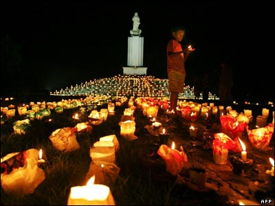 در تیمور شرقی شرکت کنندگان تظاهراتی برای صلح، هزاران شمع را روشن کرده اند.