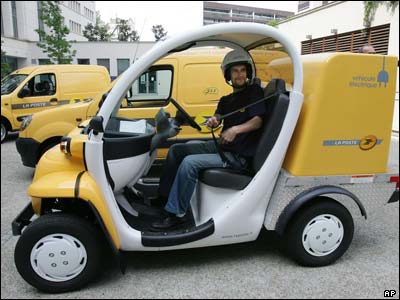 نامه رسان شرکت پست فرانسه سوار بر خودرويی الکتريکی. اين شرکت قصد دارد در سال 2007 پانصد دستگاه و تا پنج سال ديگر 10 هزار دستگاه ديگر از اين خودرو را وارد سیستم پست اين کشور کند.